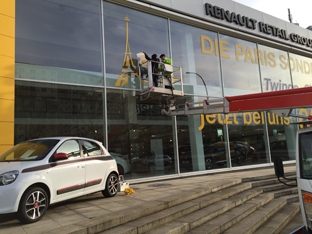 Auf Wunsch auch mit leicht entfernbaren Folien für kurzfristige Werbung ( z.B. Vorführwagenbeschriftungen).
